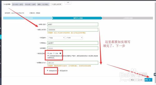 7、继续填写内容,如实填写,不然可能会通过不了。其中,“ 域名验证类型 ”要打勾,如图所示。填完后,下一步