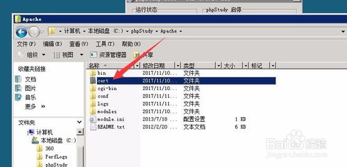 15、在Apache目录下新建文件夹“cert”,文件夹用了放刚才下载好的证书(4个文件:3个.pem,1个.key),如图: